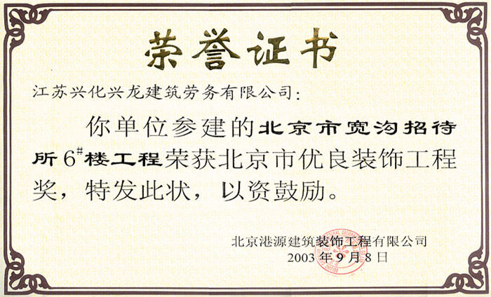 北京市優(yōu)良裝飾工程