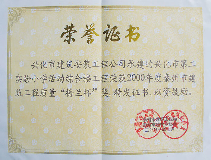 : 上方寺工程獲泰州“梅蘭杯”獎
