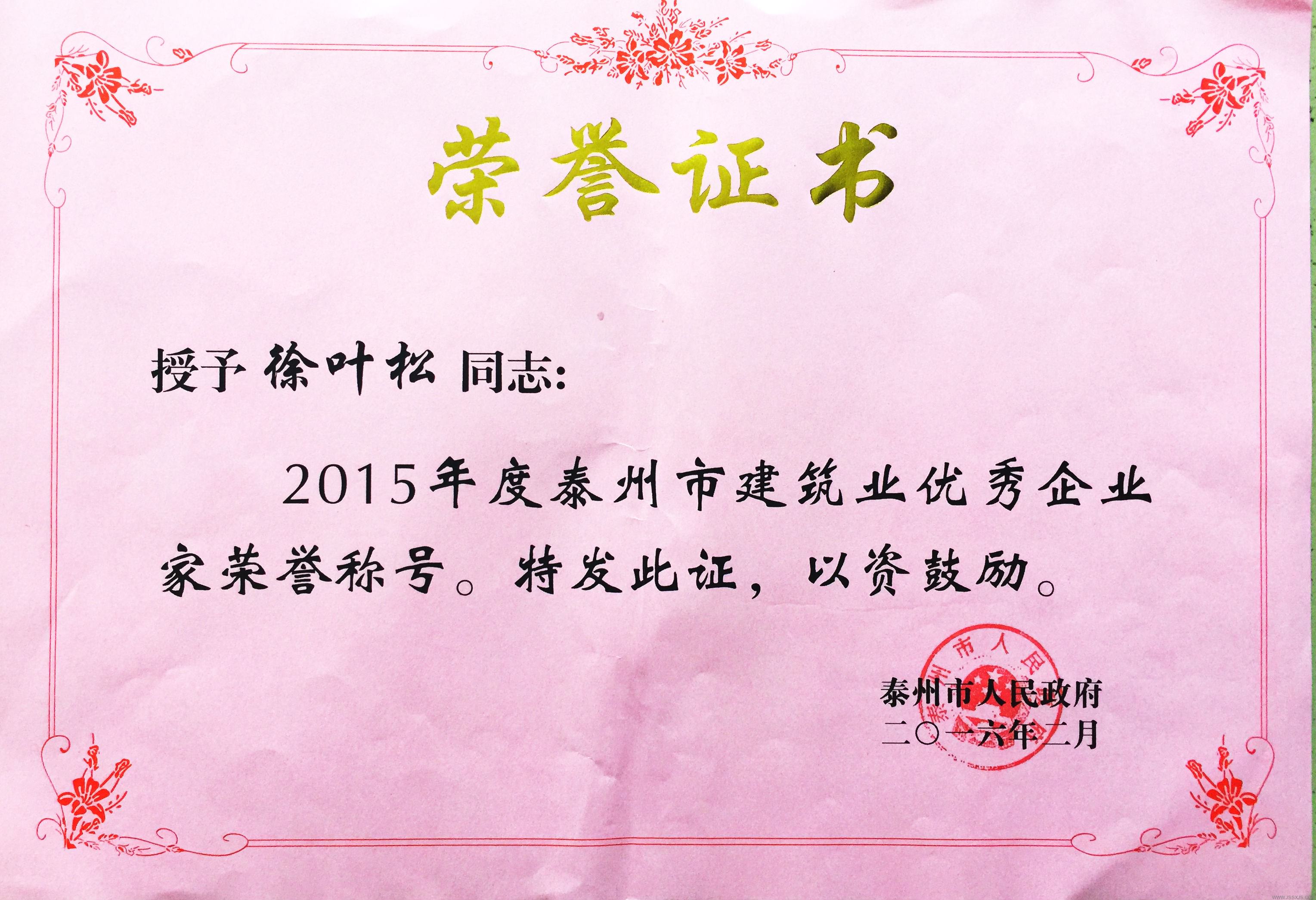 2014年度泰州市建筑業(yè)優(yōu)秀企業(yè)家